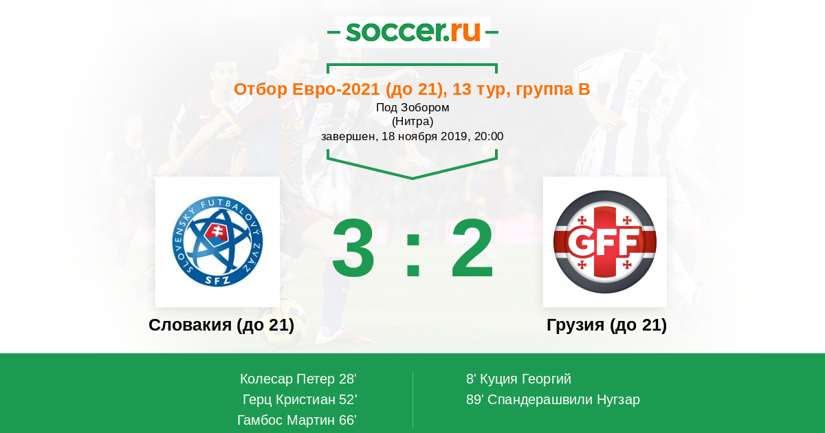 Протокол матча Словакия (до 21) против Грузия (до 21)