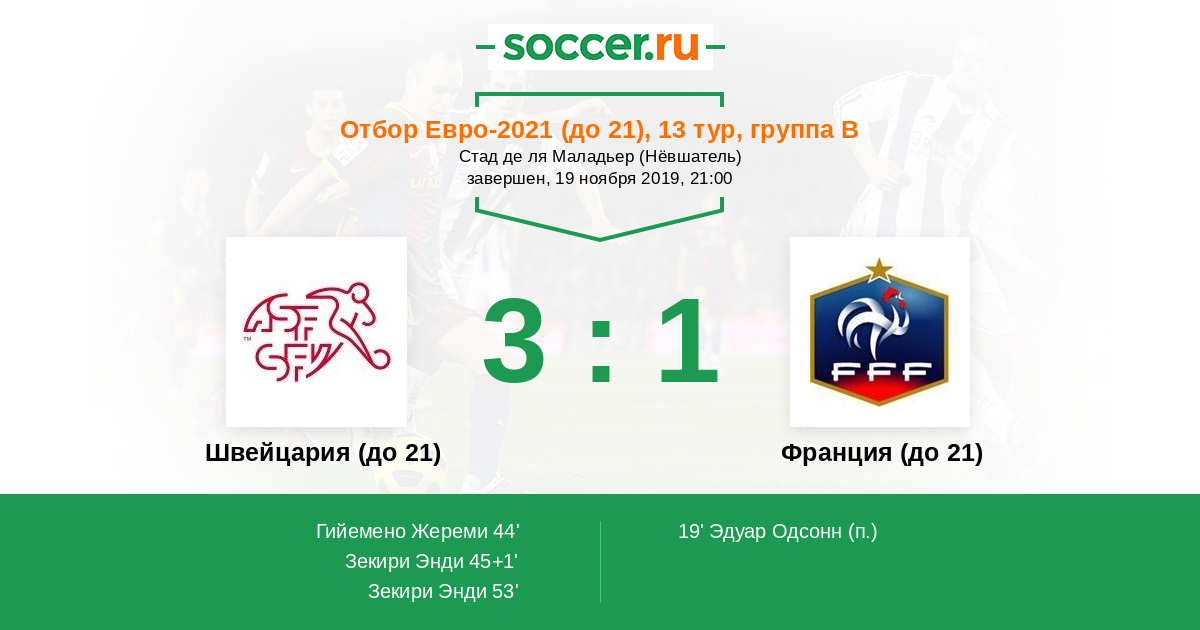 Протокол матча Швейцария (до 21) против Франция (до 21)