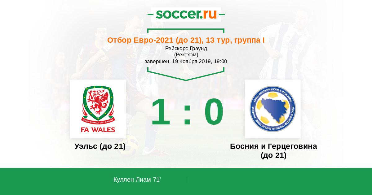 Протокол матча Уэльс (до 21) против Босния и Герцеговина (до 21)