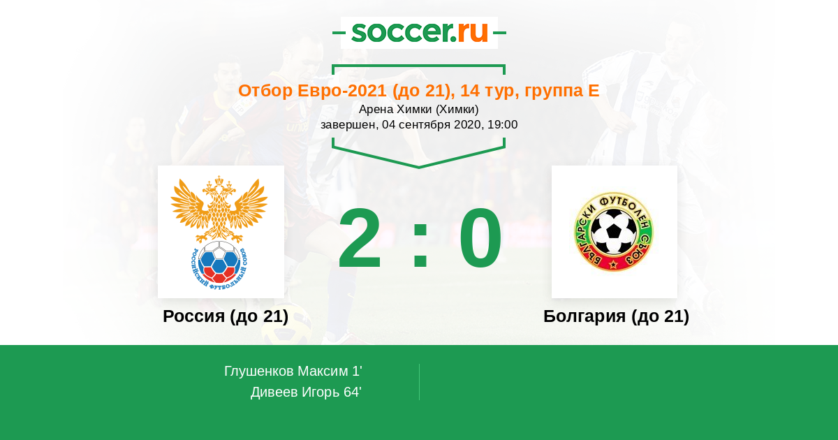 Протокол матча Россия (до 21) против Болгария (до 21)