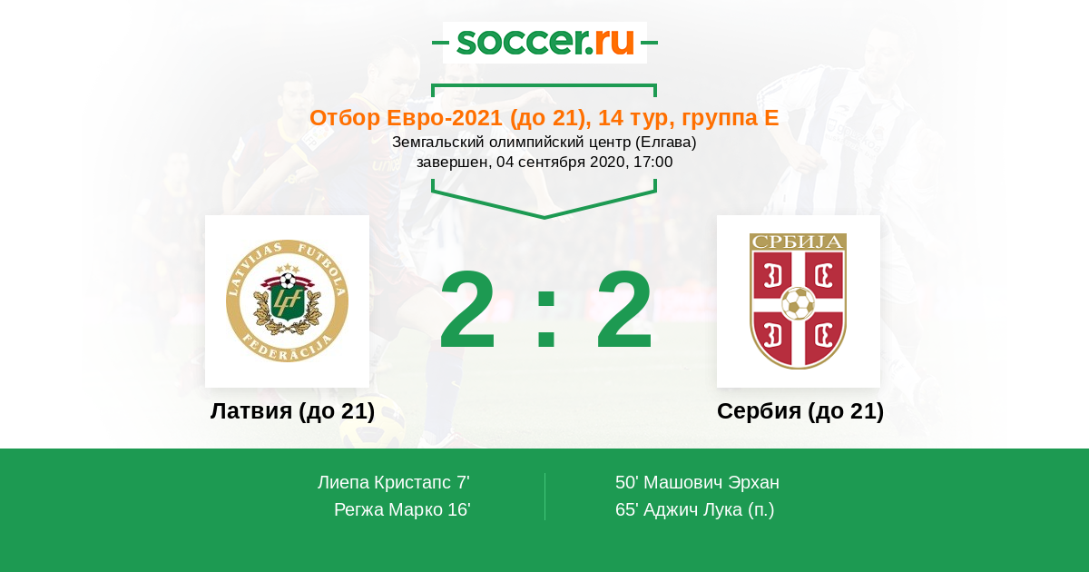 Протокол матча Латвия (до 21) против Сербия (до 21)