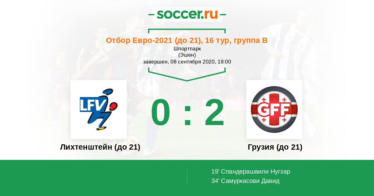 Протокол матча Лихтенштейн (до 21) против Грузия (до 21)