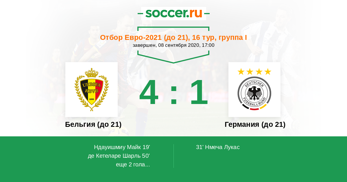 Протокол матча Бельгия (до 21) против Германия (до 21)