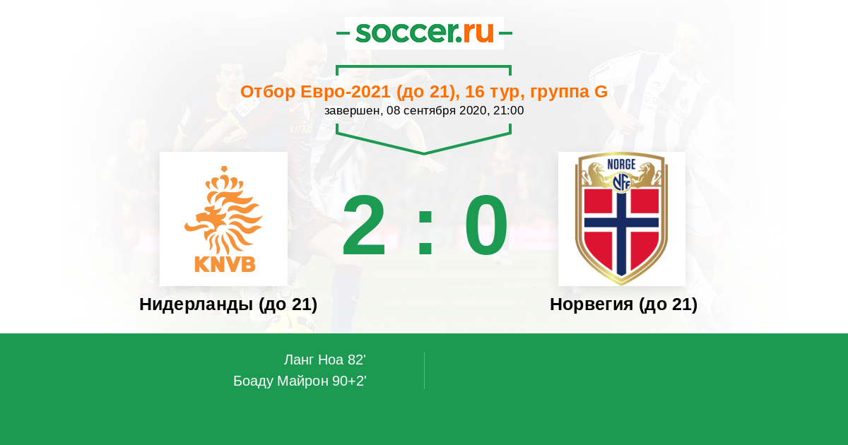 Протокол матча Нидерланды (до 21) против Норвегия (до 21)