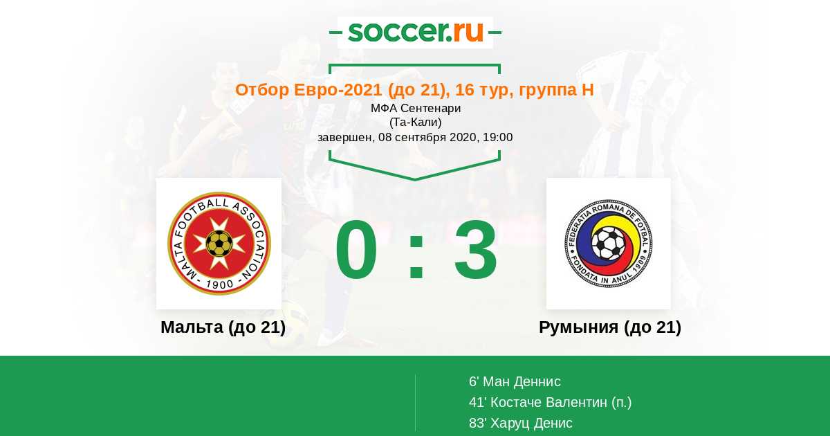 Протокол матча Мальта (до 21) против Румыния (до 21)