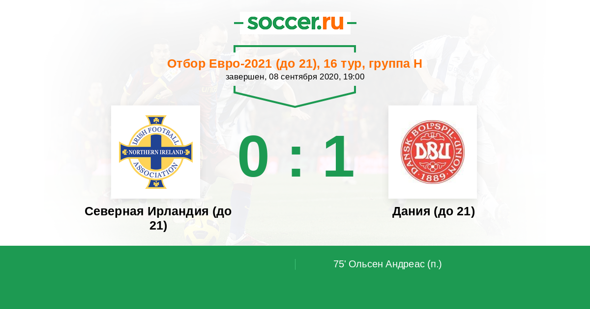 Протокол матча Северная Ирландия (до 21) против Дания (до 21)