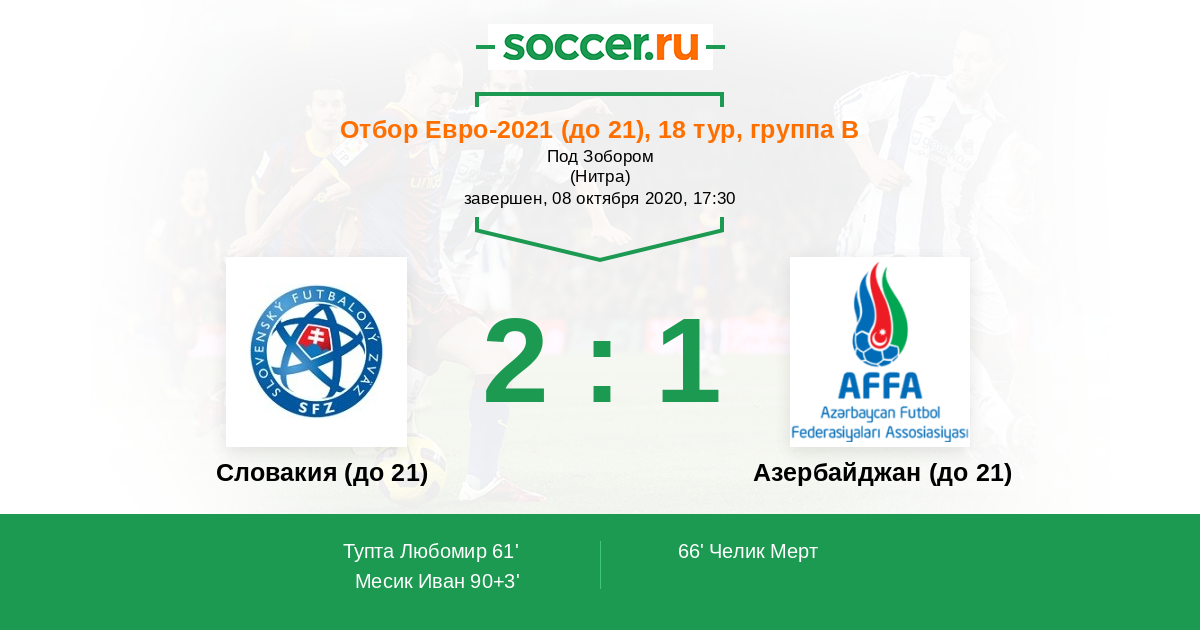 Протокол матча Словакия (до 21) против Азербайджан (до 21)