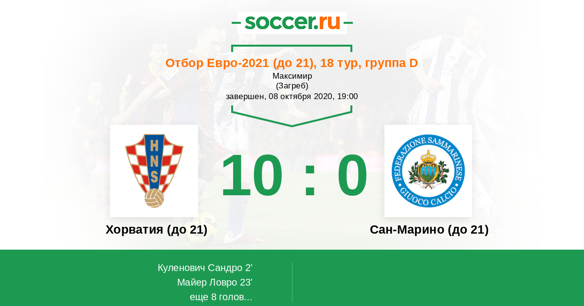 Протокол матча Хорватия (до 21) против Сан-Марино (до 21)
