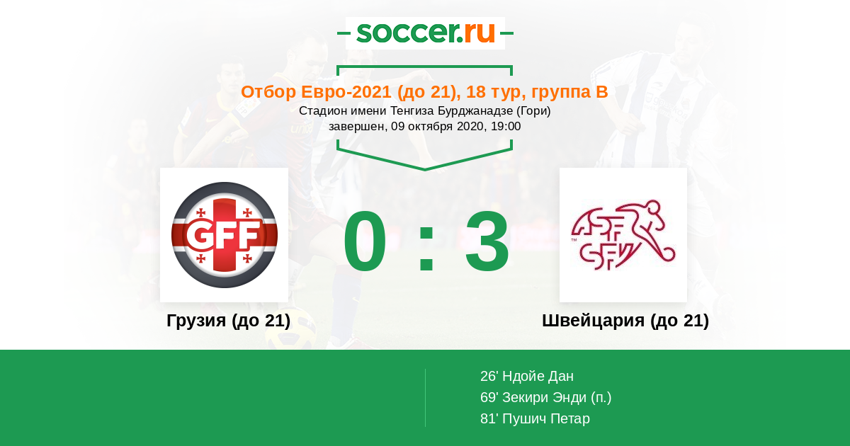 Протокол матча Грузия (до 21) против Швейцария (до 21)