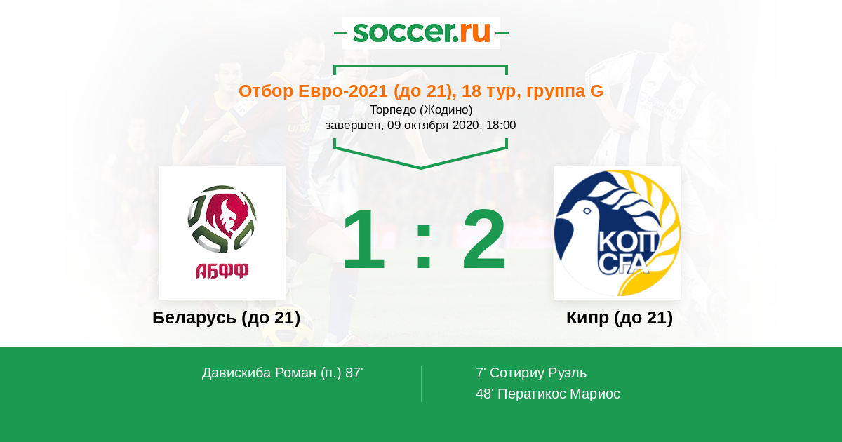 Протокол матча Беларусь (до 21) против Кипр (до 21)