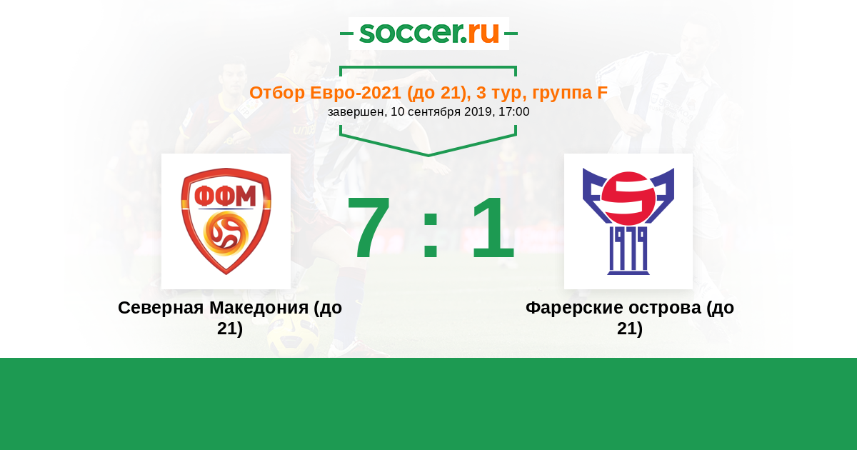 История матча Северная Македония (до 21) против Фарерские острова (до 21)