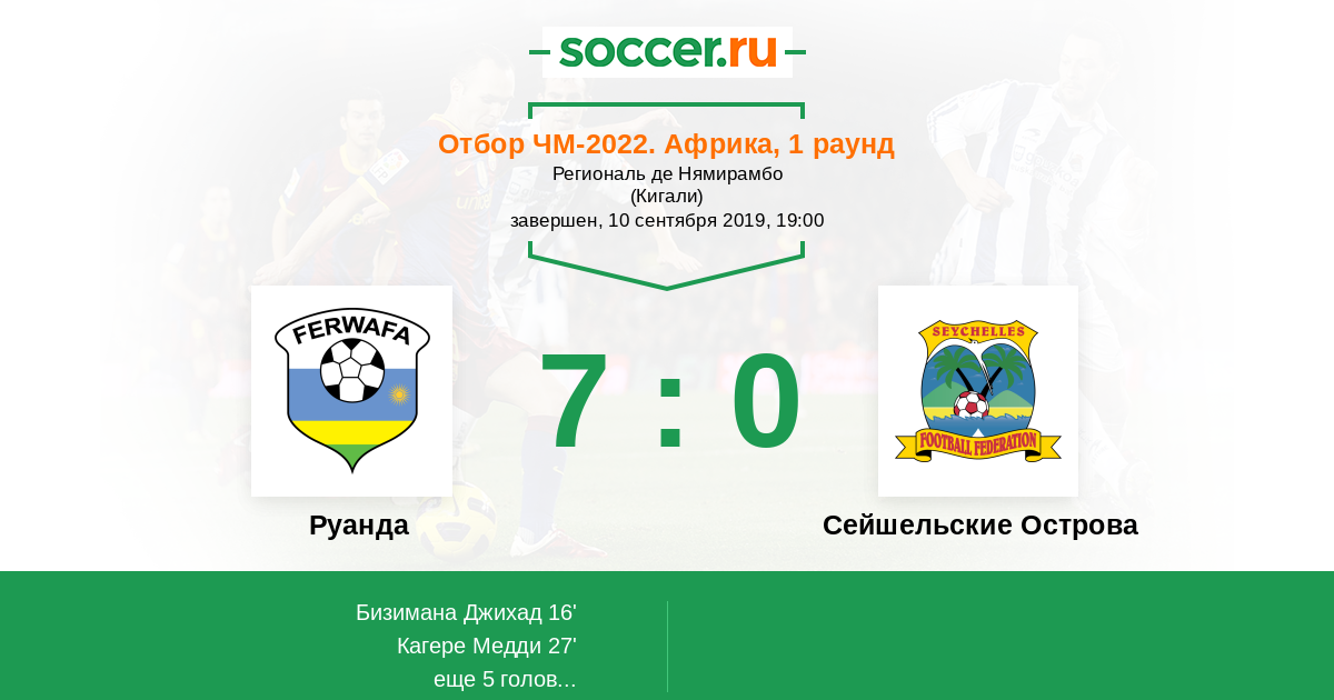 Протокол матча Руанда против Сейшельские Острова