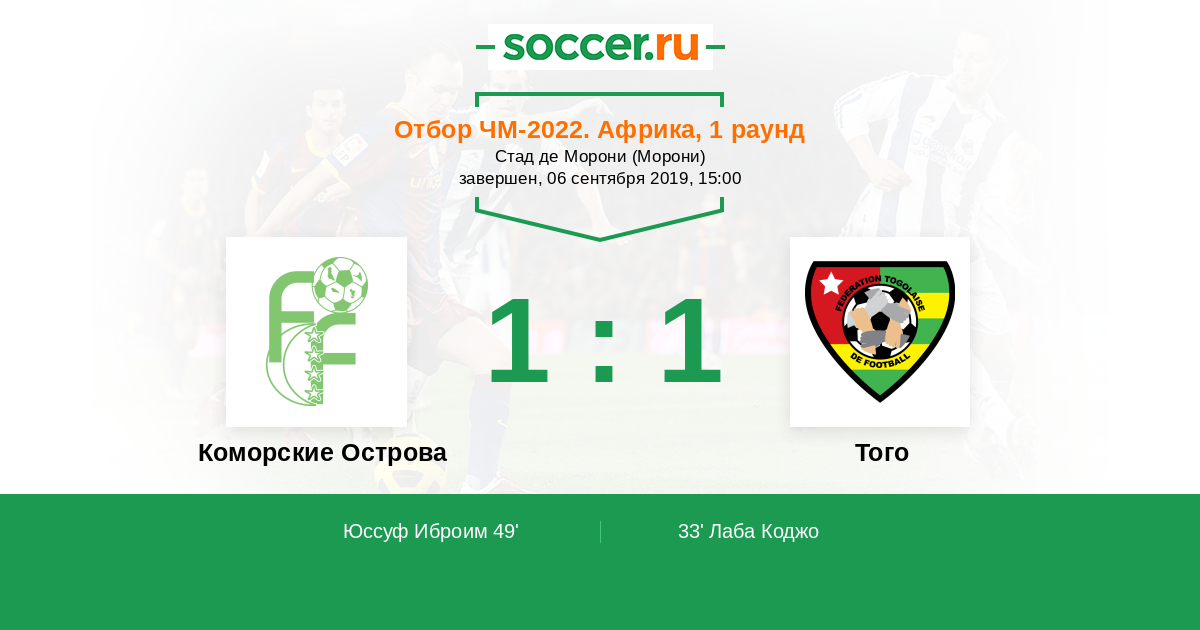 Протокол матча Коморские Острова против Того