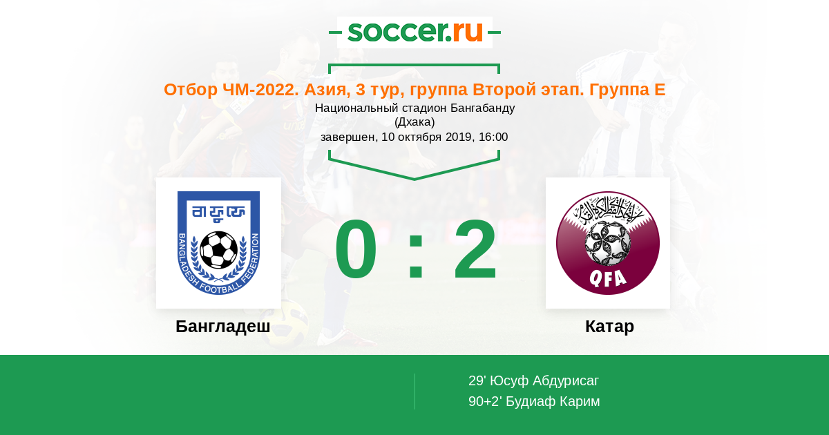 29' (0:1) Юсуф Абдурисаг (18) (Алмоез Али (19))