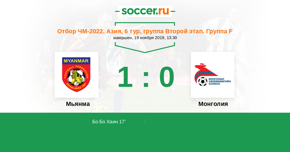 Протокол матча Мьянма против Монголия