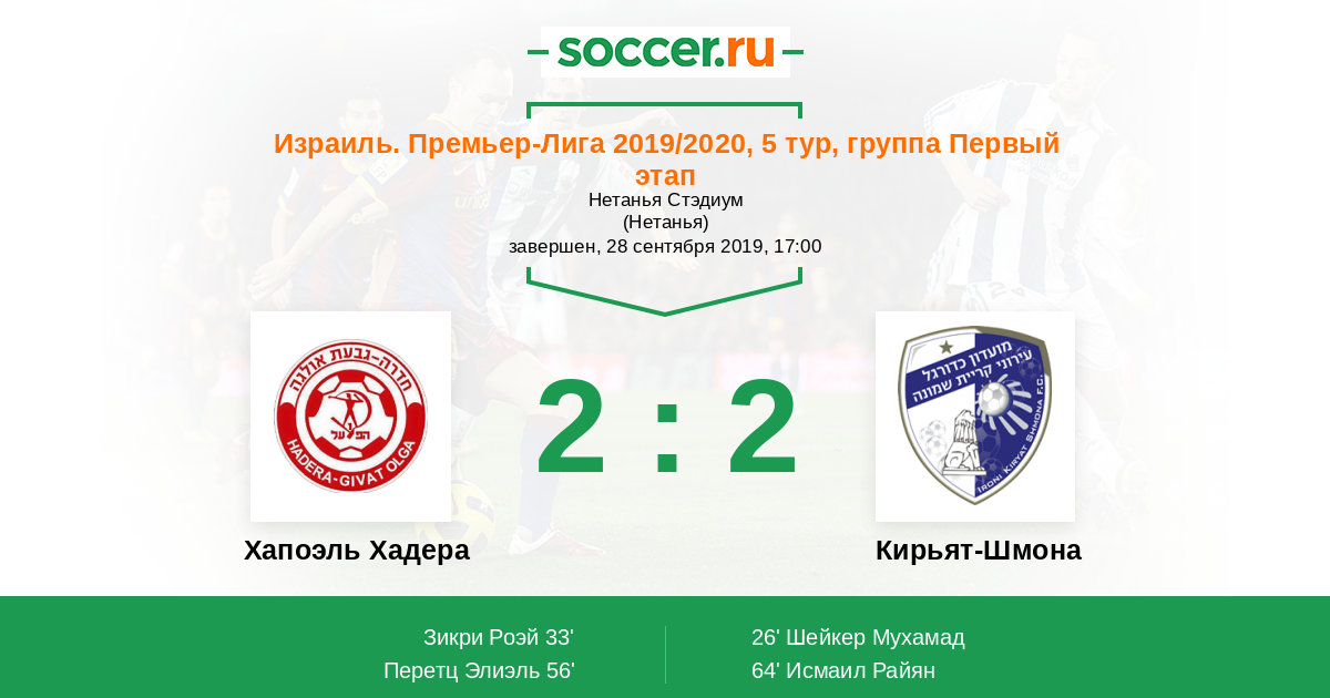 Протокол матча Хапоэль Хадера против Кирьят-Шмона