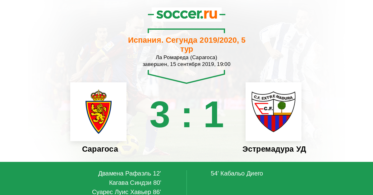 Протокол матча Сарагоса против Эстремадура УД