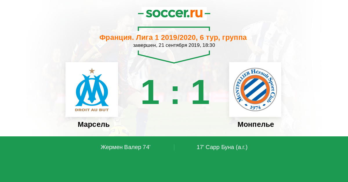Протокол матча Марсель против Монпелье