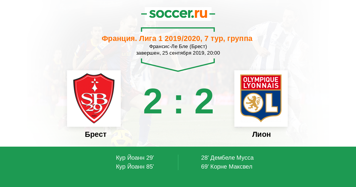Протокол матча Брест против Лион