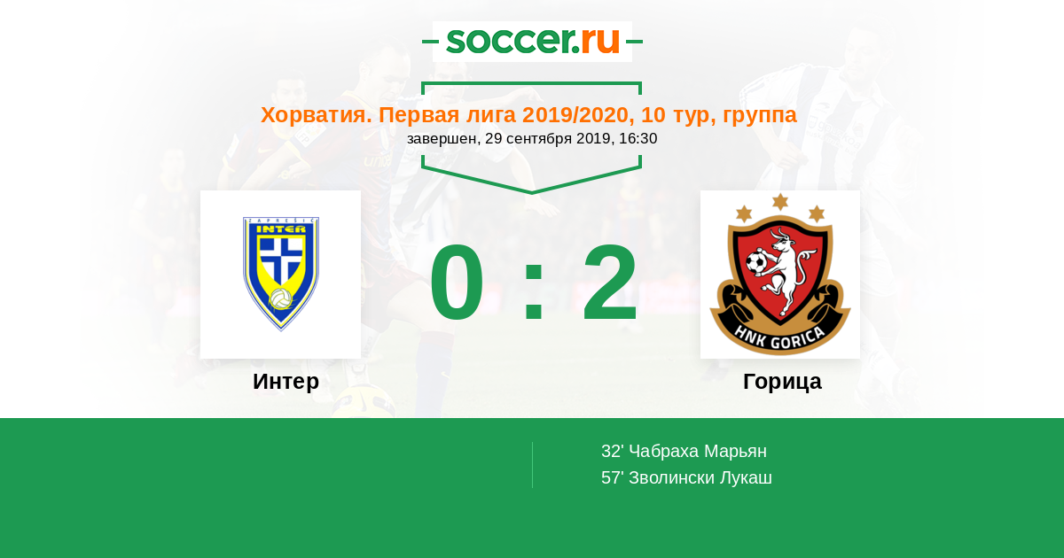 Протокол матча Интер против Горица