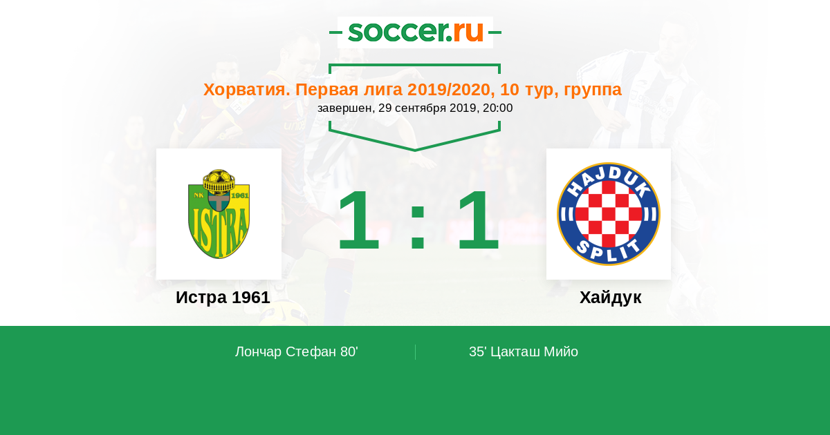 Протокол матча Истра 1961 против Хайдук