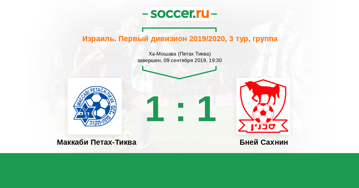 История матча Маккаби Петах-Тиква против Бней Сахнин