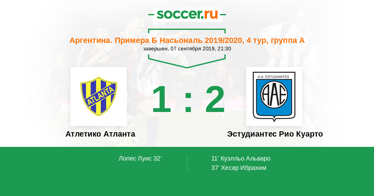 Протокол матча Атлетико Атланта против Эстудиантес Рио Куарто