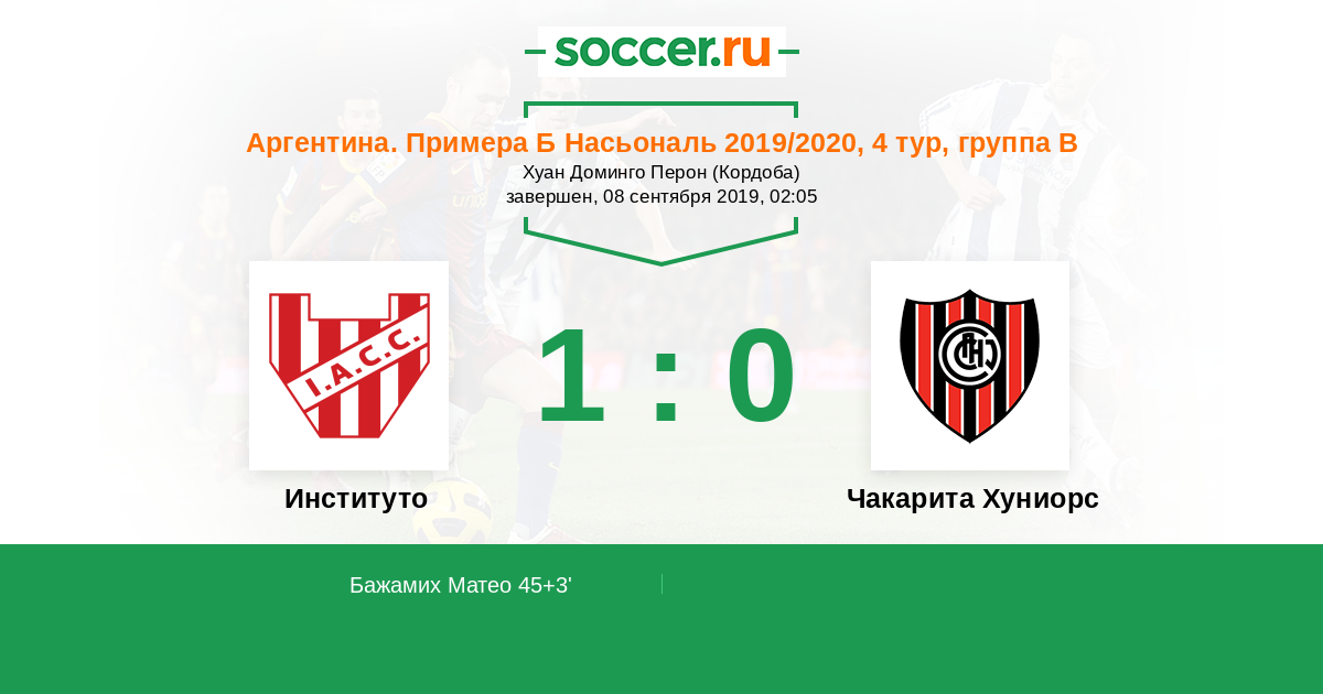 Протокол матча Институто против Чакарита Хуниорс
