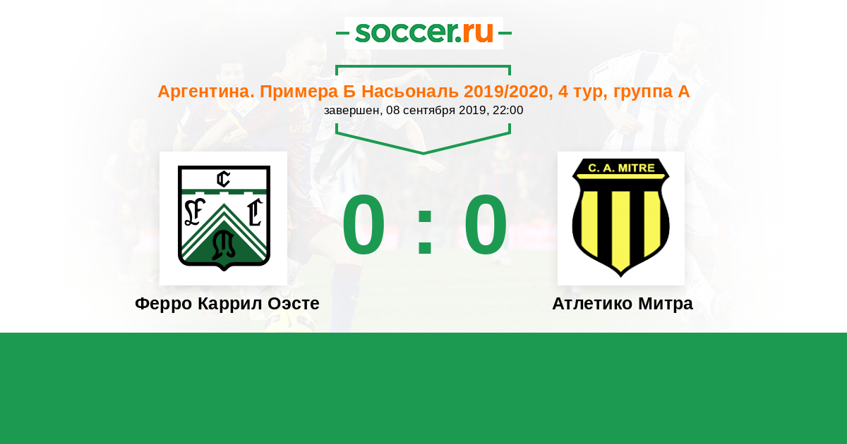 Протокол матча Ферро Каррил Оэсте против Атлетико Митра