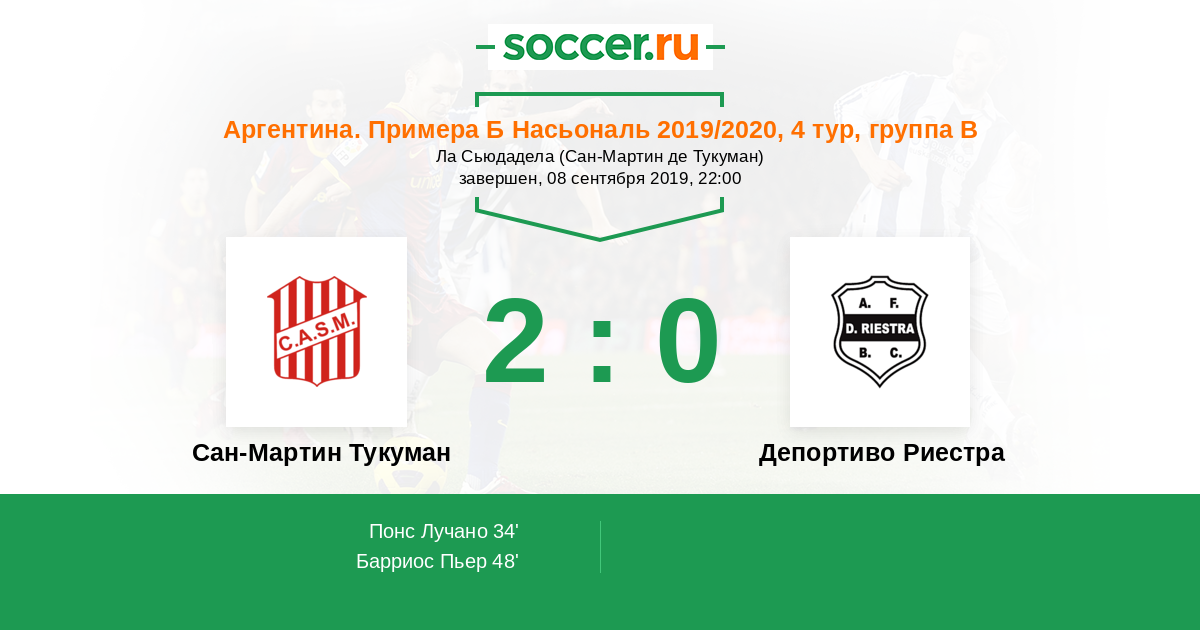 Протокол матча Сан-Мартин Тукуман против Депортиво Риестра