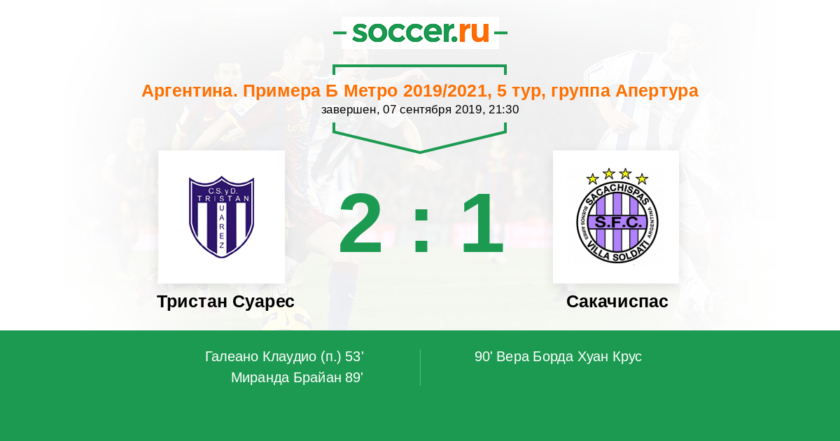 Протокол матча Тристан Суарес против Сакачиспас