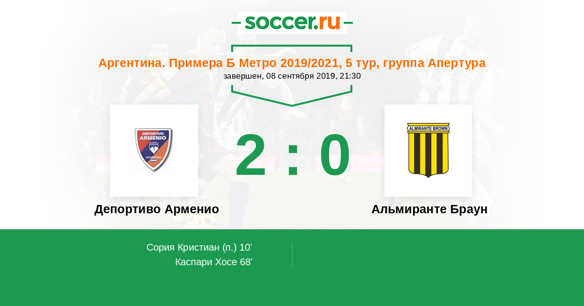 Протокол матча Депортиво Арменио против Альмиранте Браун