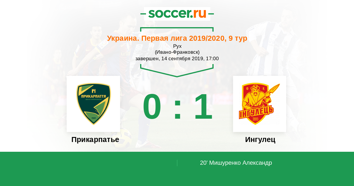 Протокол матча Прикарпатье против Ингулец