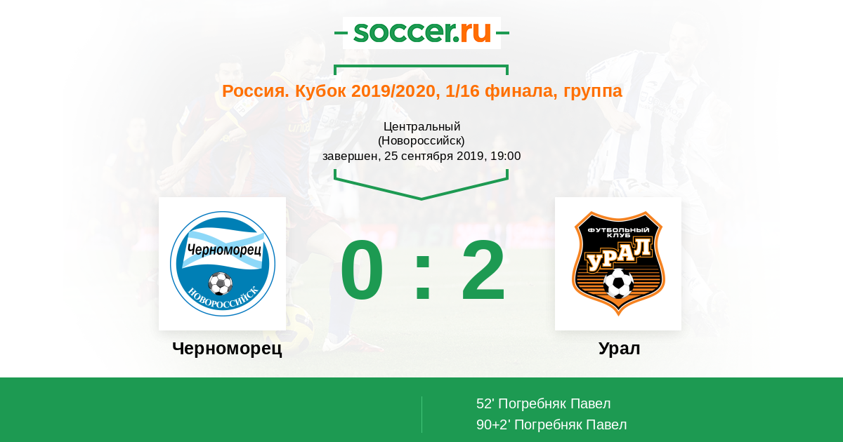 Протокол матча Черноморец против Урал