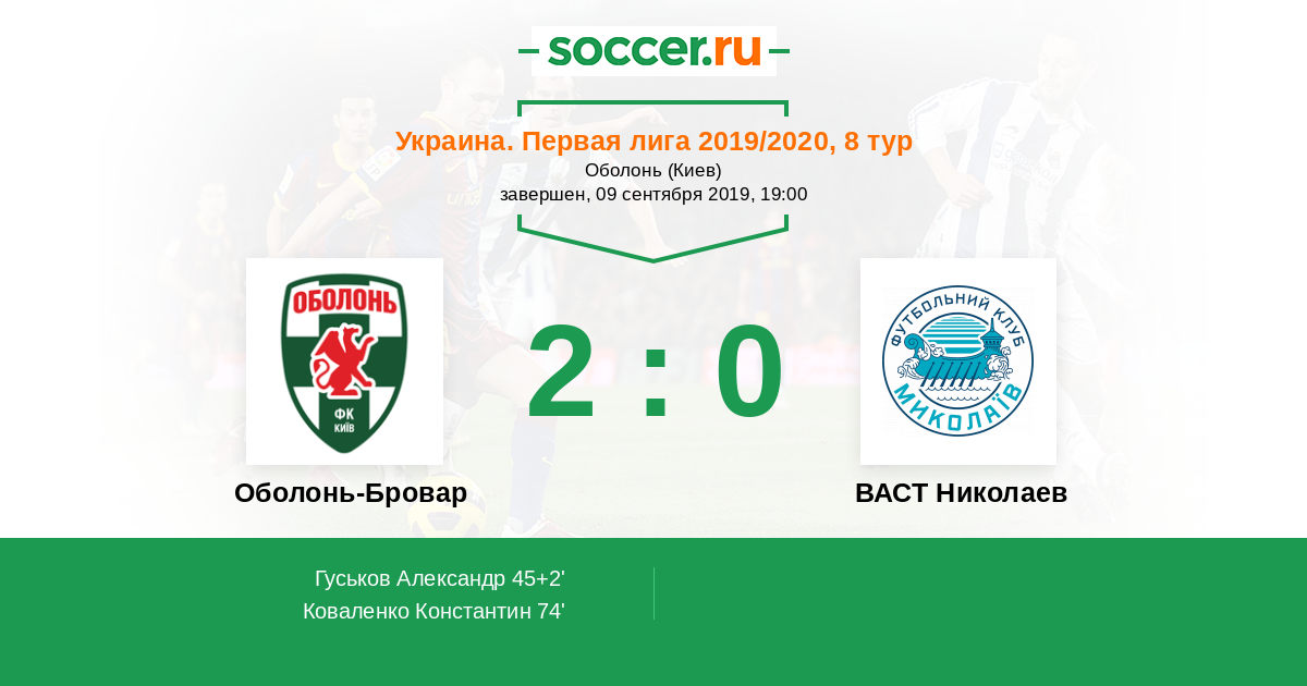 Протокол матча Оболонь-Бровар против ВАСТ Николаев
