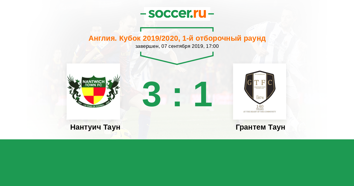 Англия. Истмийский дивизион 10.09.2016 Грантем Таун Логотип футбольный клуб Грантем Таун 0:4 Логотип футбольный клуб Нантуич Таун Нантуич Таун