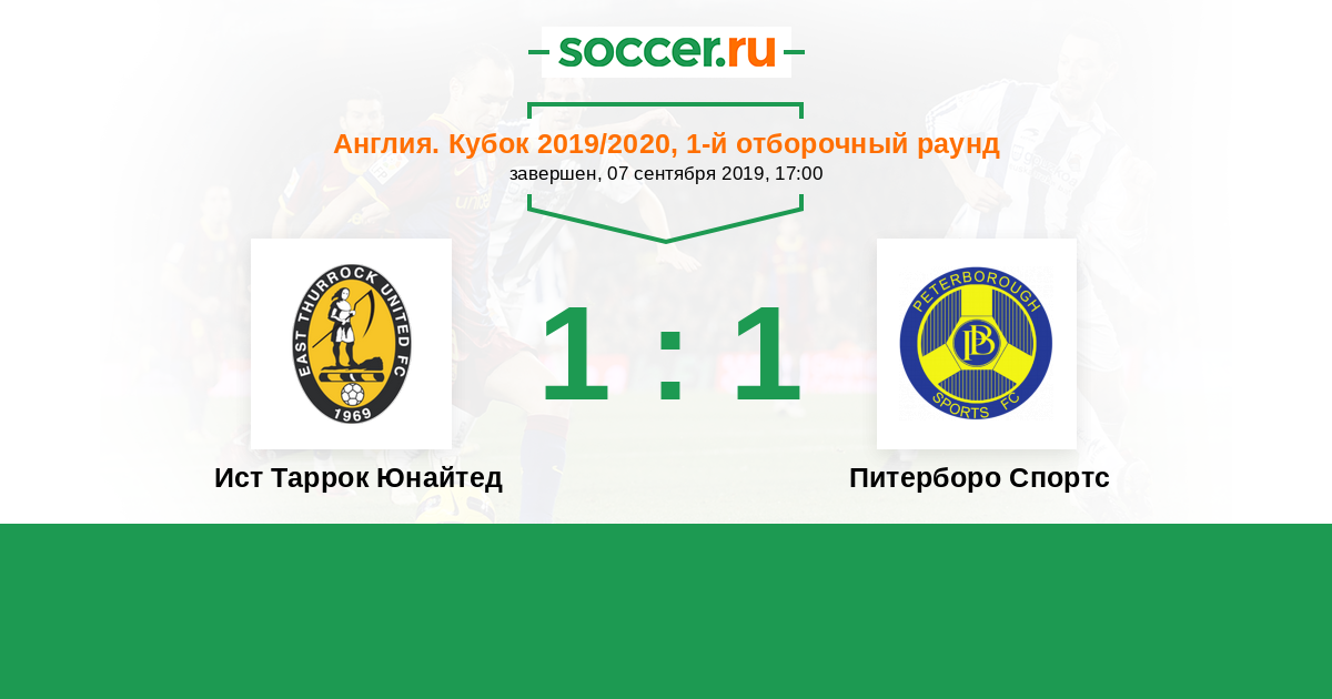 История матча Ист Таррок Юнайтед против Питерборо Спортс