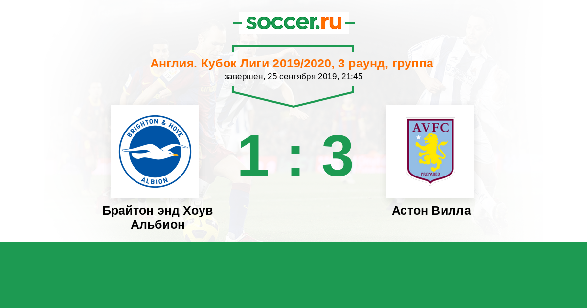Протокол матча Брайтон энд Хоув Альбион против Астон Вилла