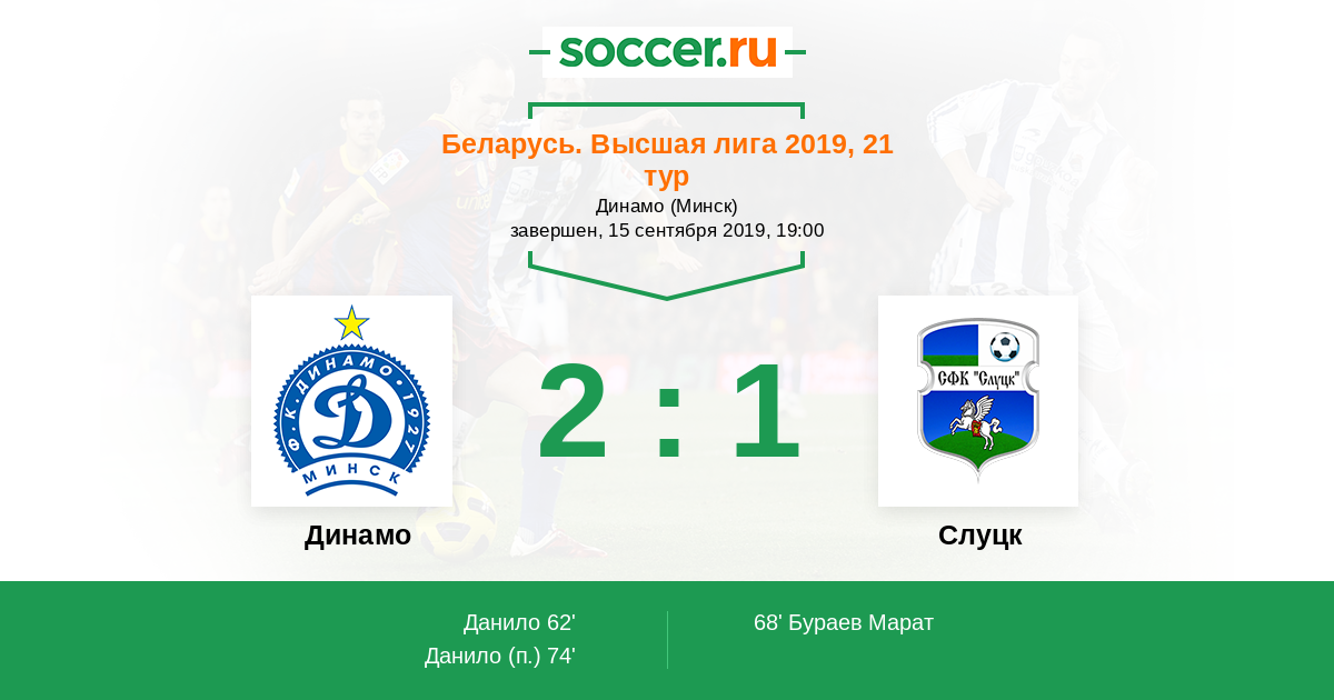 Протокол матча Динамо против Слуцк