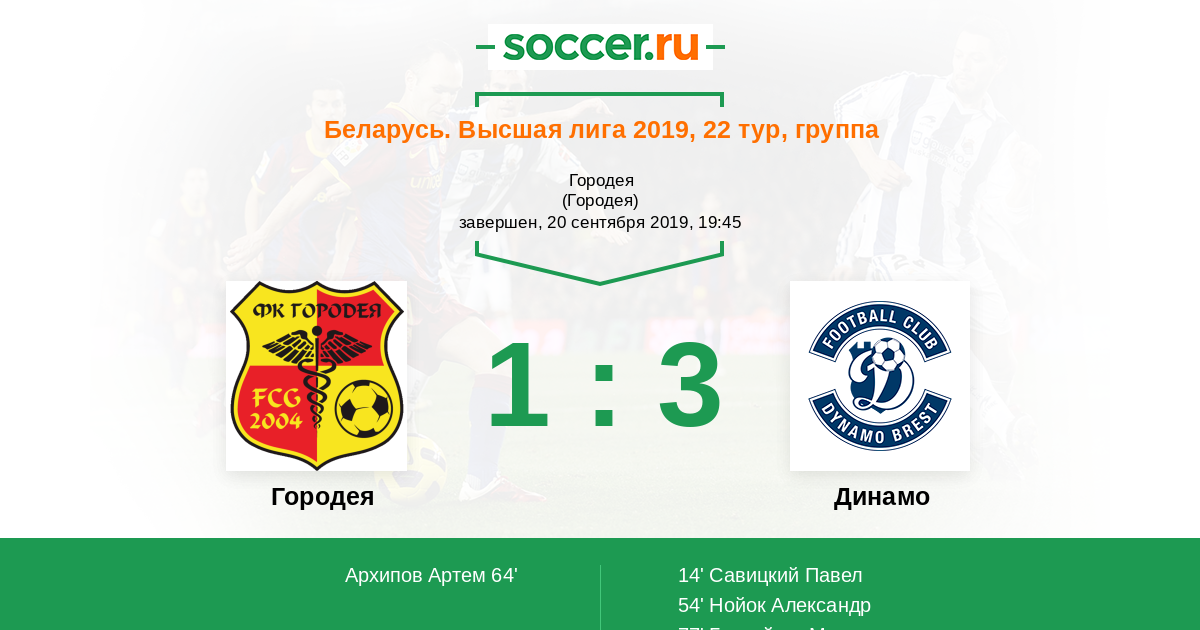 Протокол матча Городея против Динамо