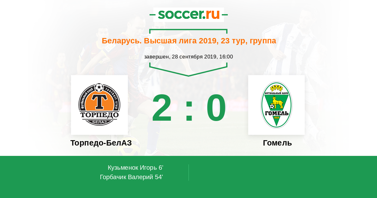 Протокол матча Торпедо-БелАЗ против Гомель