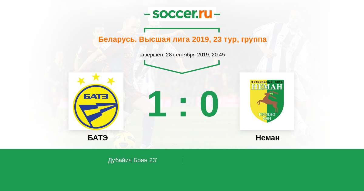 Протокол матча БАТЭ против Неман