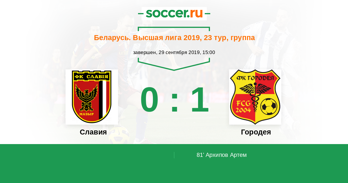 Протокол матча Славия против Городея