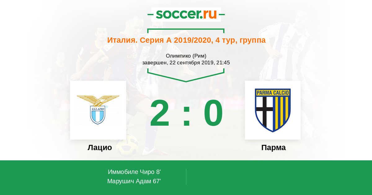 Протокол матча Лацио против Парма