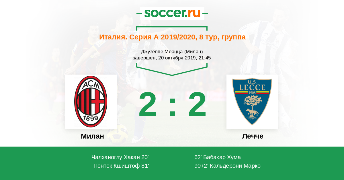 20' (1:0) Чалханоглу Хакан (10) (Билья Лукас (20))