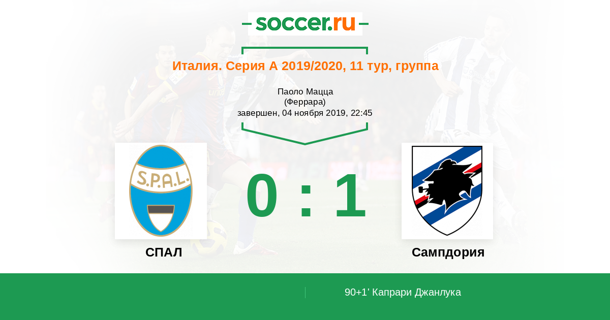 Протокол матча СПАЛ против Сампдория