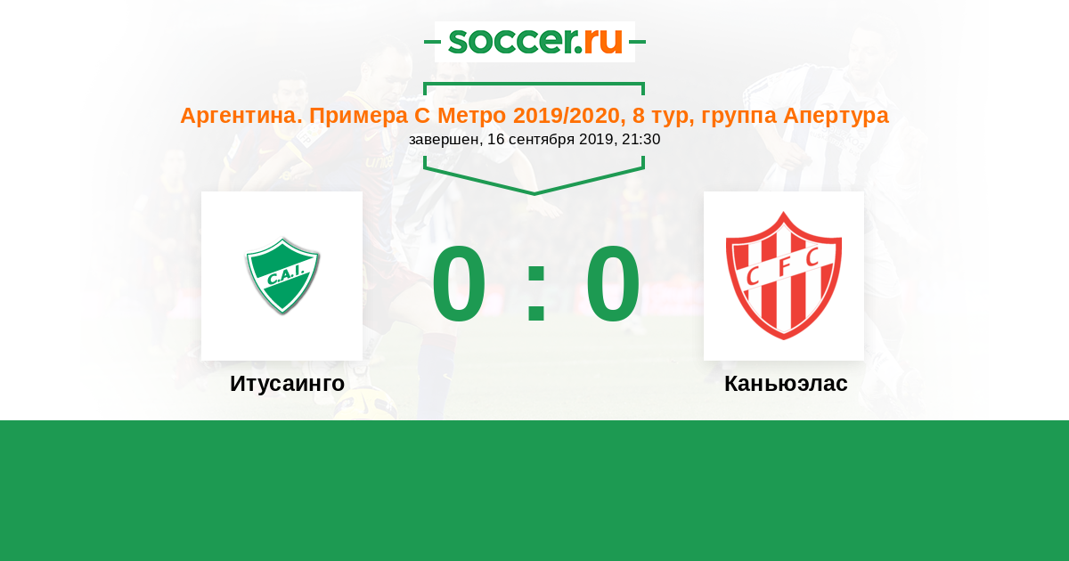 Аргентина. Примера С Метро 21.09.2018 Итусаинго Логотип футбольный клуб Итусаинго 0:1 Логотип футбольный клуб Каньюэлас Каньюэлас