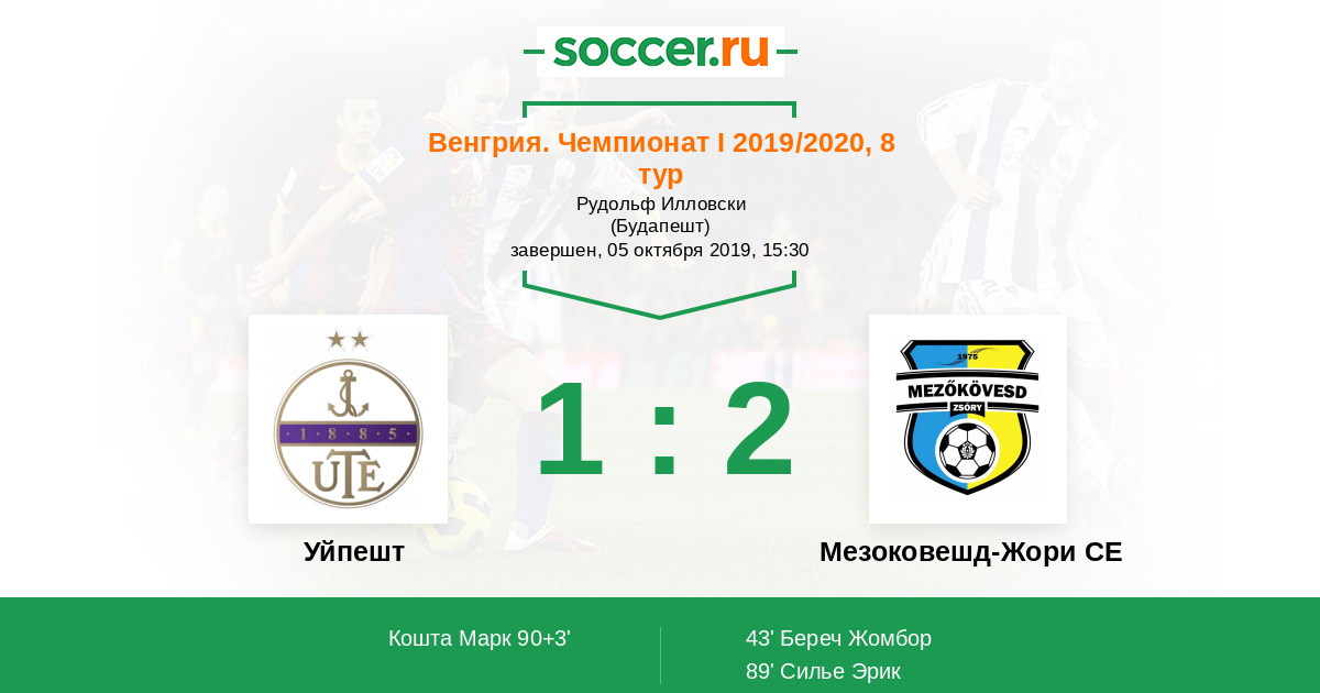 Протокол матча Уйпешт против Мезоковешд-Жори СЕ