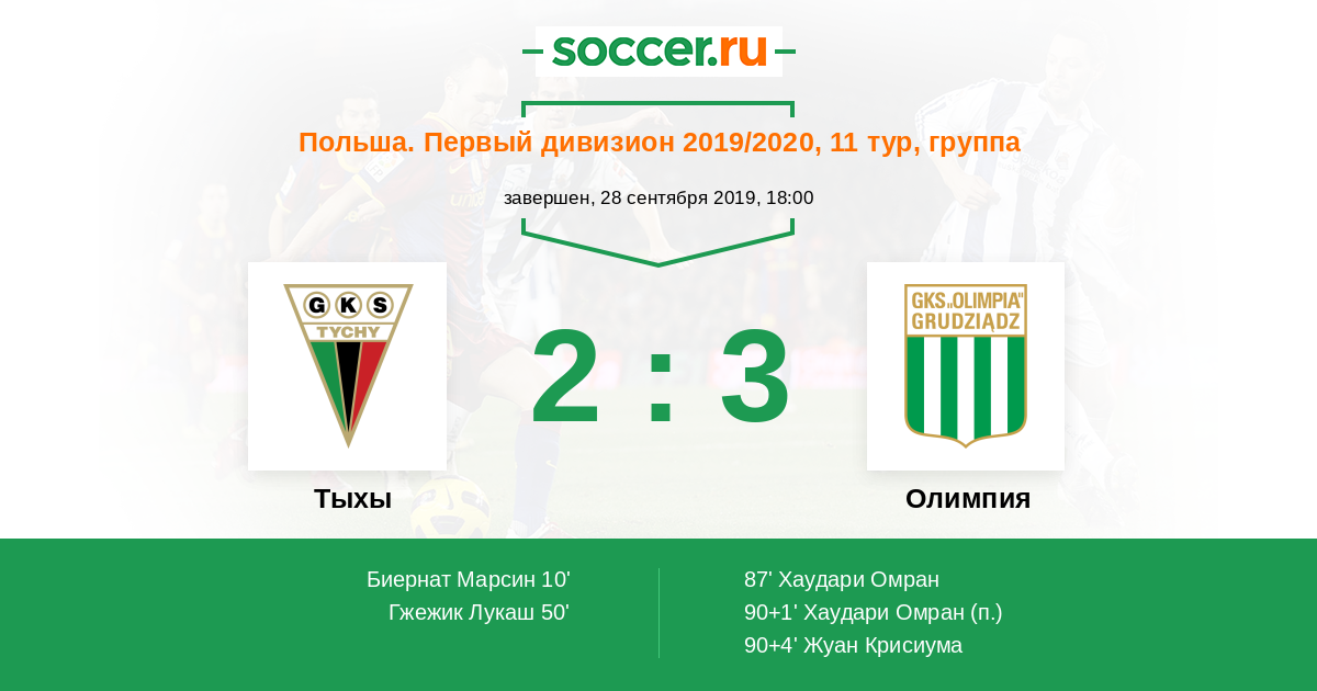 Протокол матча Тыхы против Олимпия