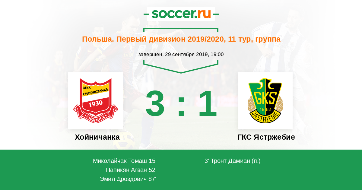 Протокол матча Хойничанка против ГКС Ястржебие
